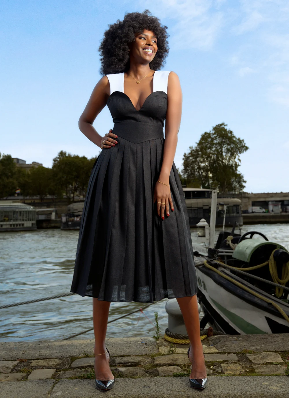 Déterminée, elle intègre l’ESMOD Paris pour perfectionner son talent et réaliser son rêve. Avec la collection INITIALES en 2021, elle lance sa marque à Dakar.
